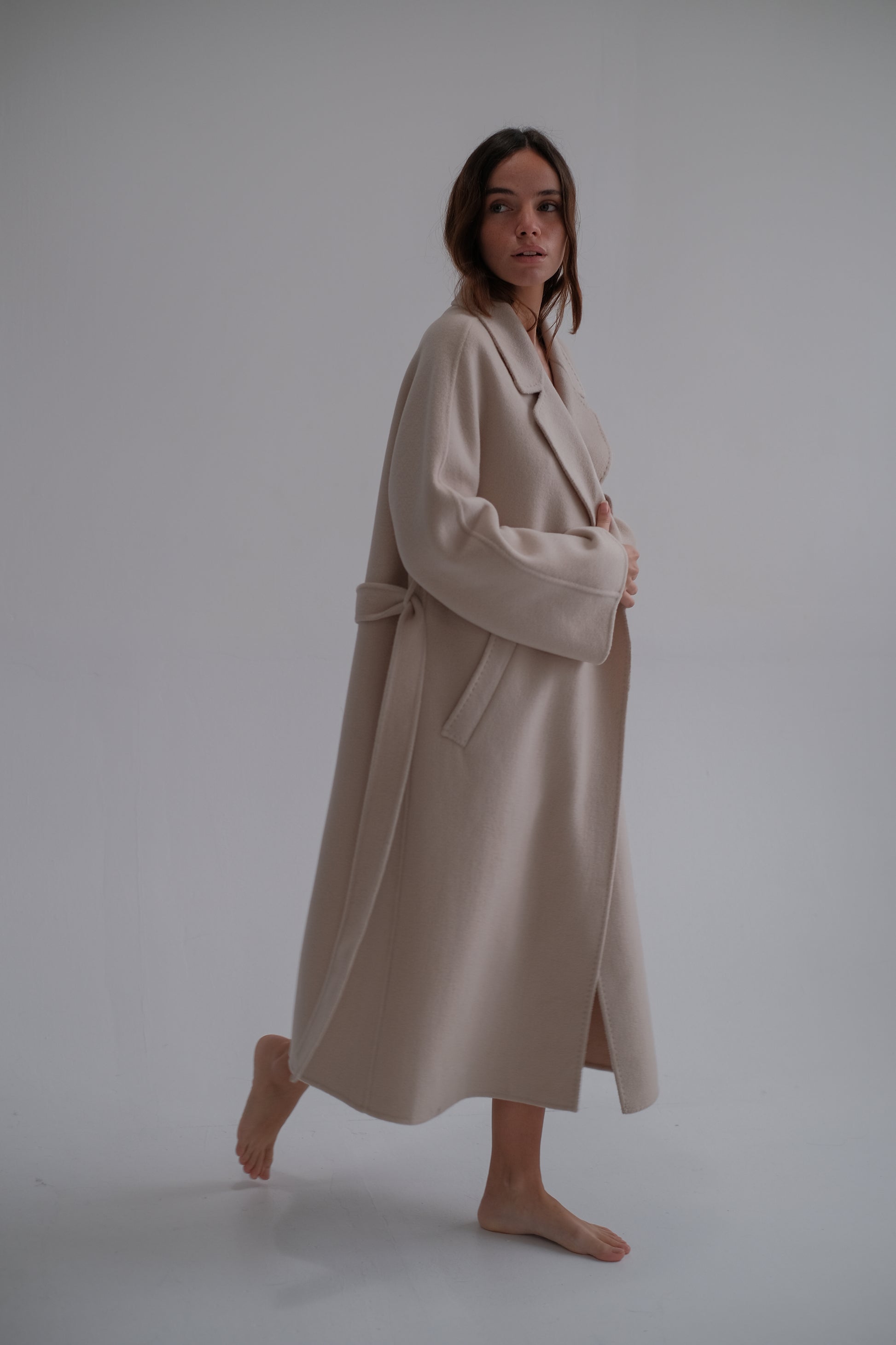 meticulously crafted from pure wool, this coat showcases a classic seamless finish, elevating it to the pinnacle of sophistication. perfect for those who appreciate refined aesthetics, this coat offers an ideal choice for an elevated and timeless look.